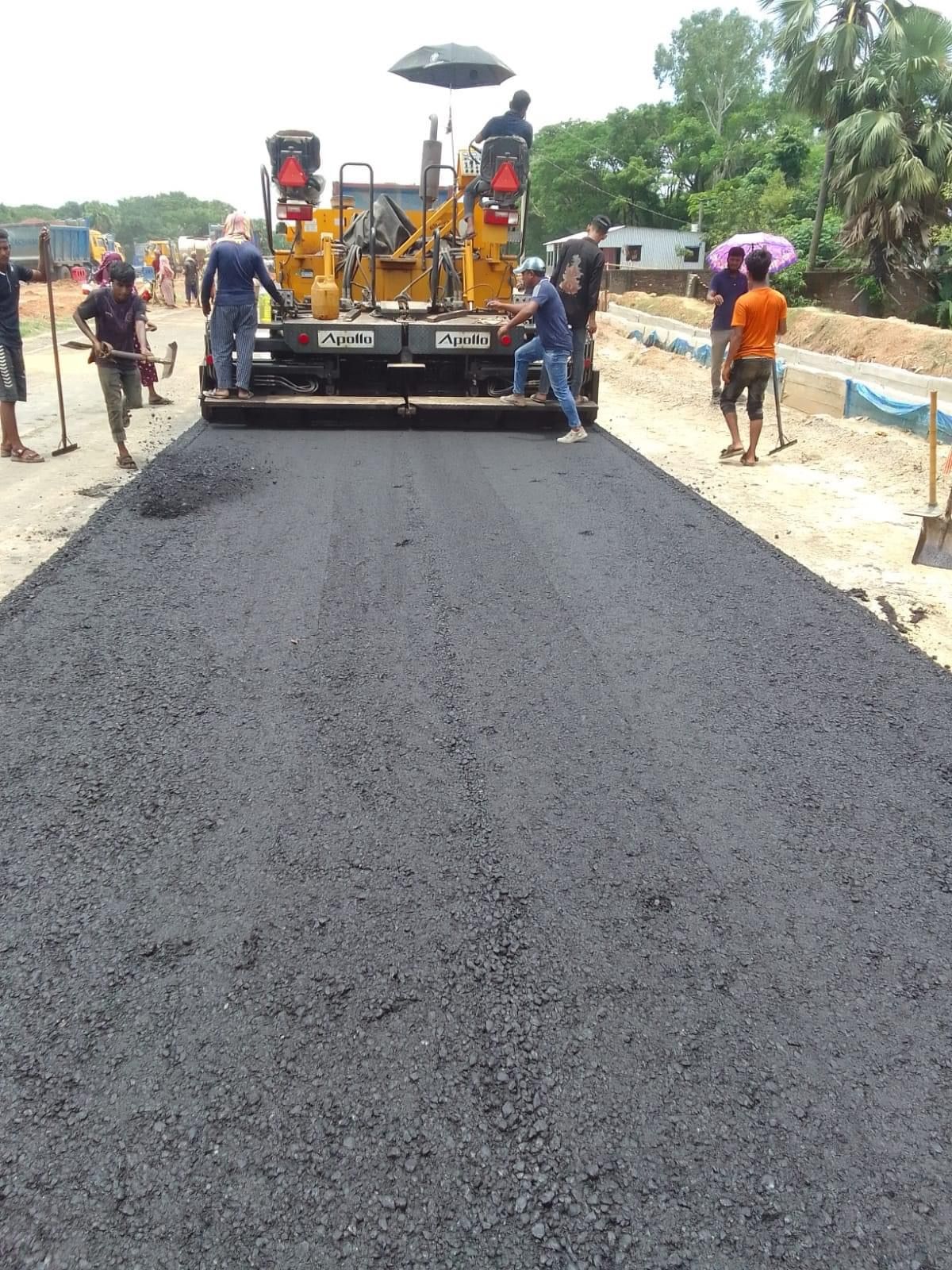 يتم فرد طبقات الأسفلت باستخدام معدات حديثة لضمان توزيع متساوي وجودة عالية.