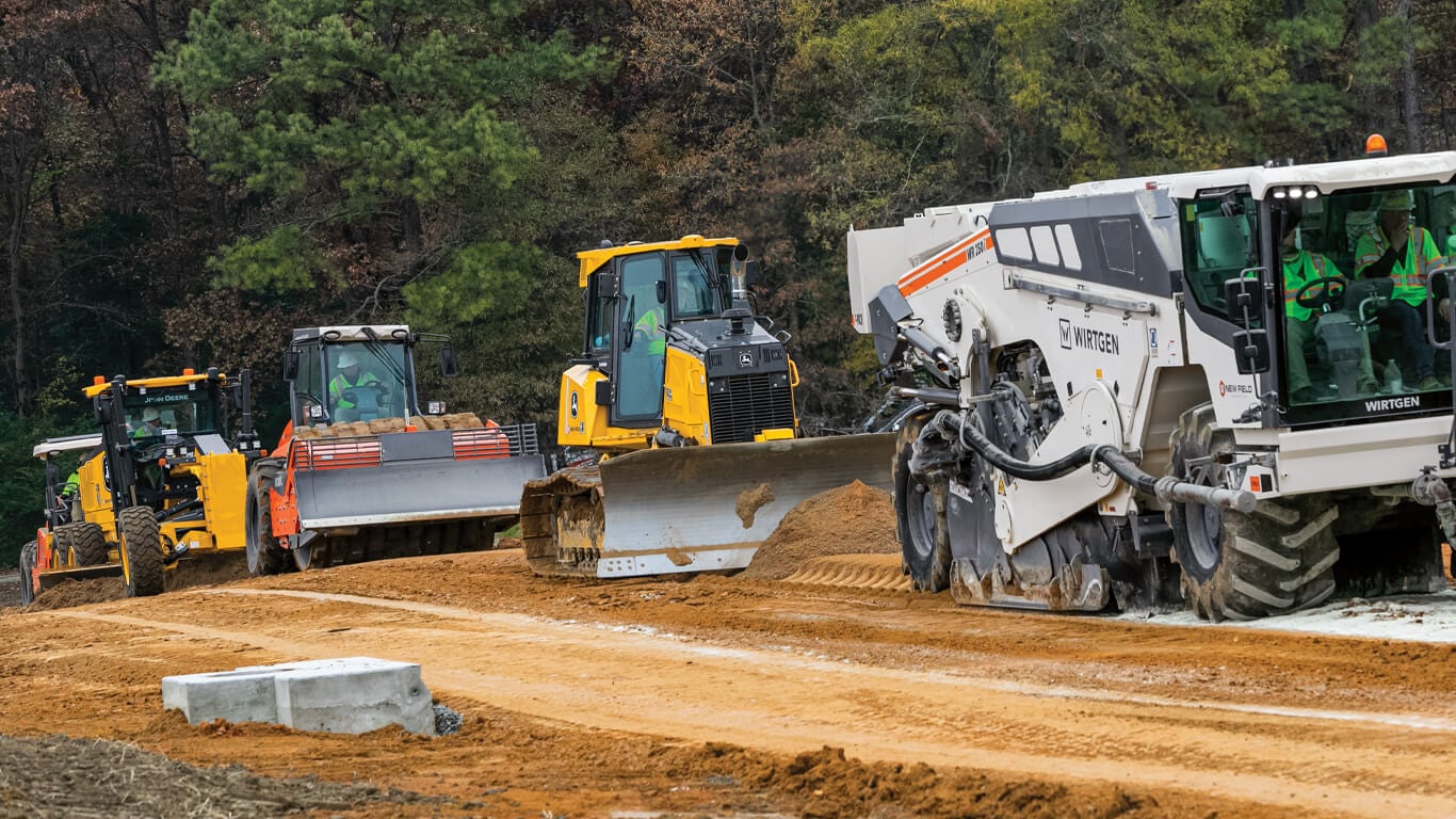 تبدأ العملية بتجهيز الأرض من خلال إزالة العوائق وتسويتها لضمان قاعدة قوية للأسفلت.